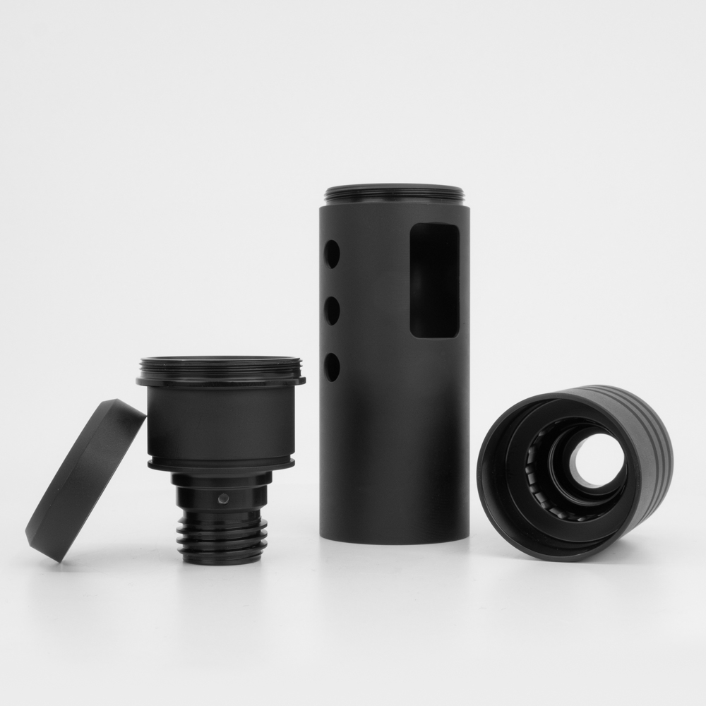 Juodos anodinės apdailos modulinis korpusas su sriegiais